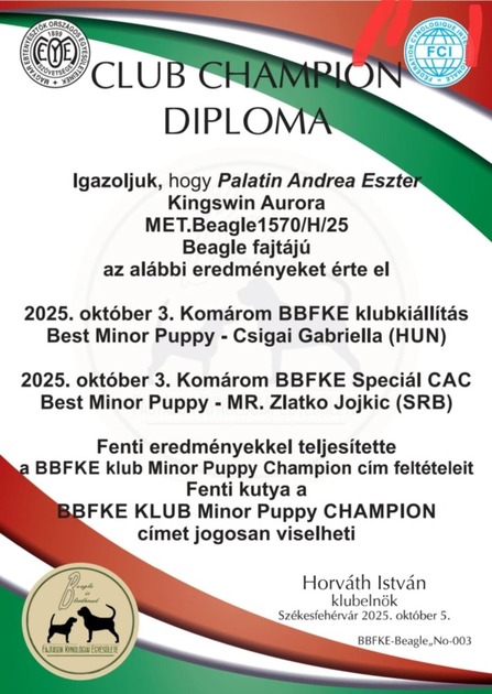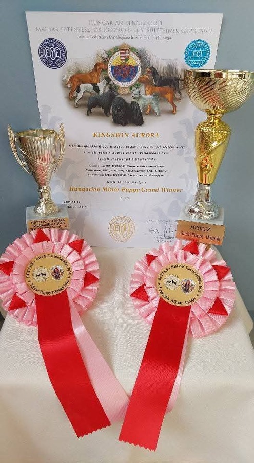 Kingswin Aurora was exported to Hungary in July, 2025 to a fabulous show home. She is doing fabulous for her new owners and has already won many 1st places in her minor puppy classes. She has also gained the title of Hungarian Minor Puppy Grand Winner. We are very proud breeders. She is litter sister to Kingswin Gifted and Kingswin Celeste both Crufts 2026 qualifiers. She isOwned by.. Andrea Eszter Palatin and Patrik Olah.